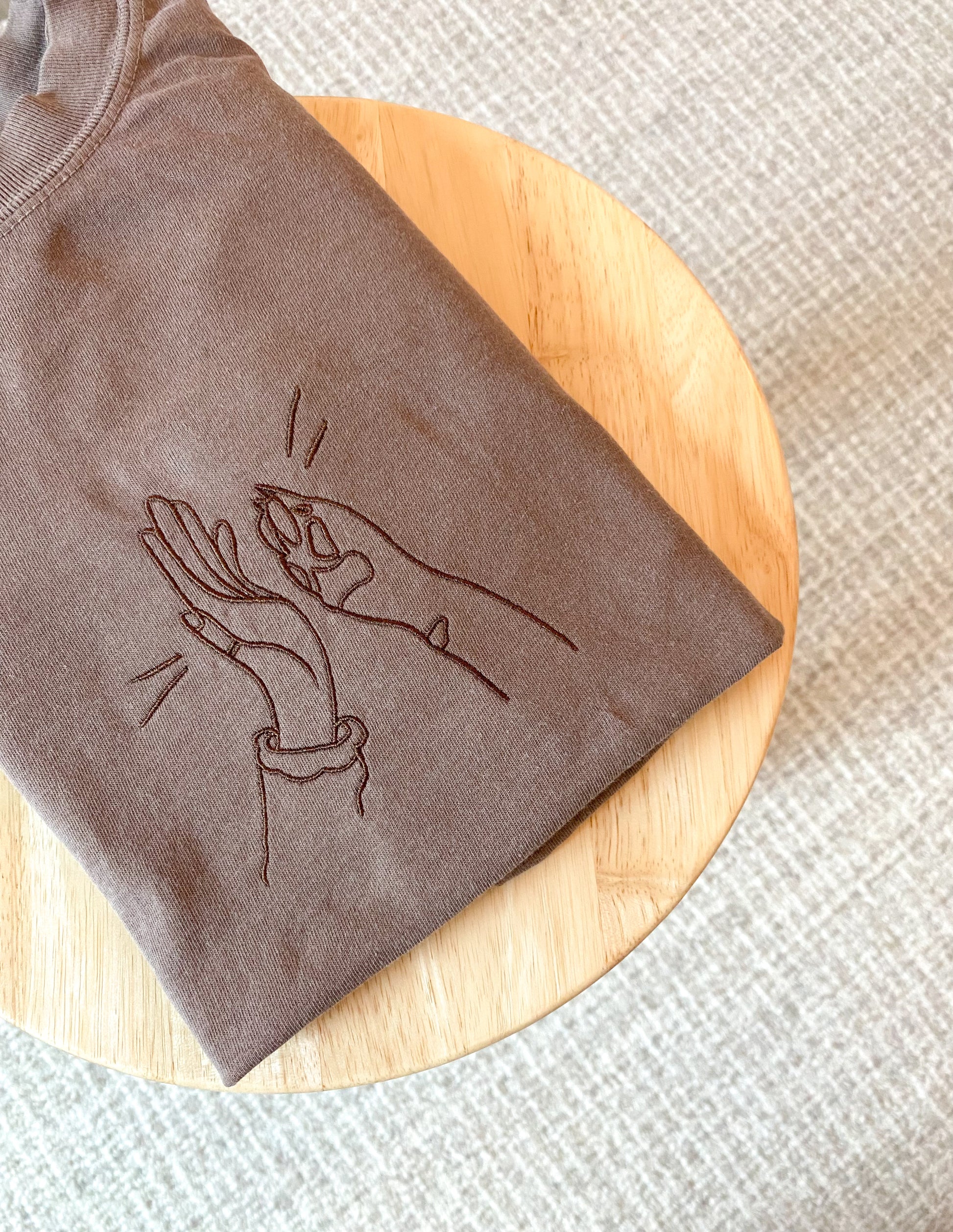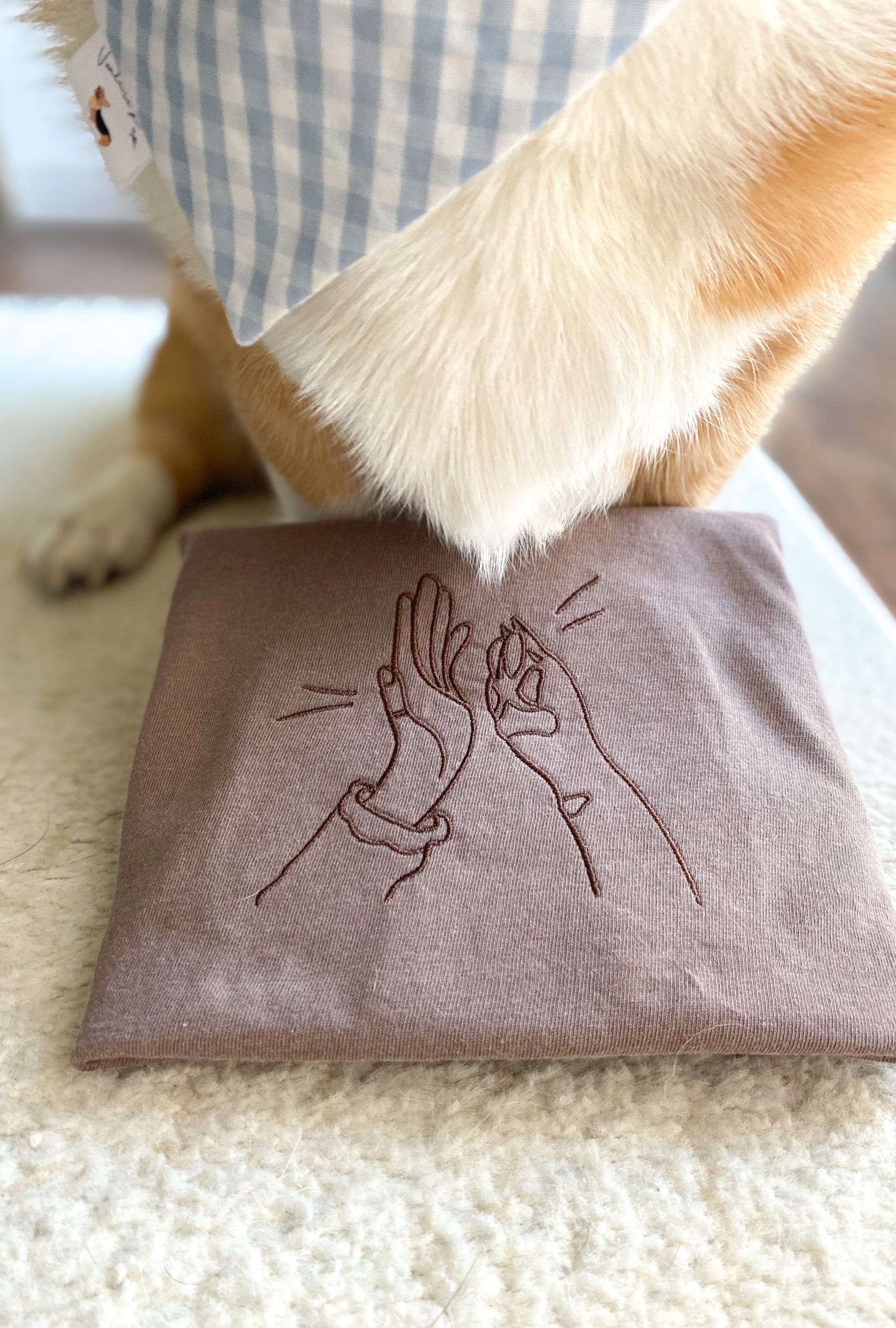 Inspired by the unique relationship we have with our pets, this embroidered tee features an adorable paw five.ย See sizing and material details below.