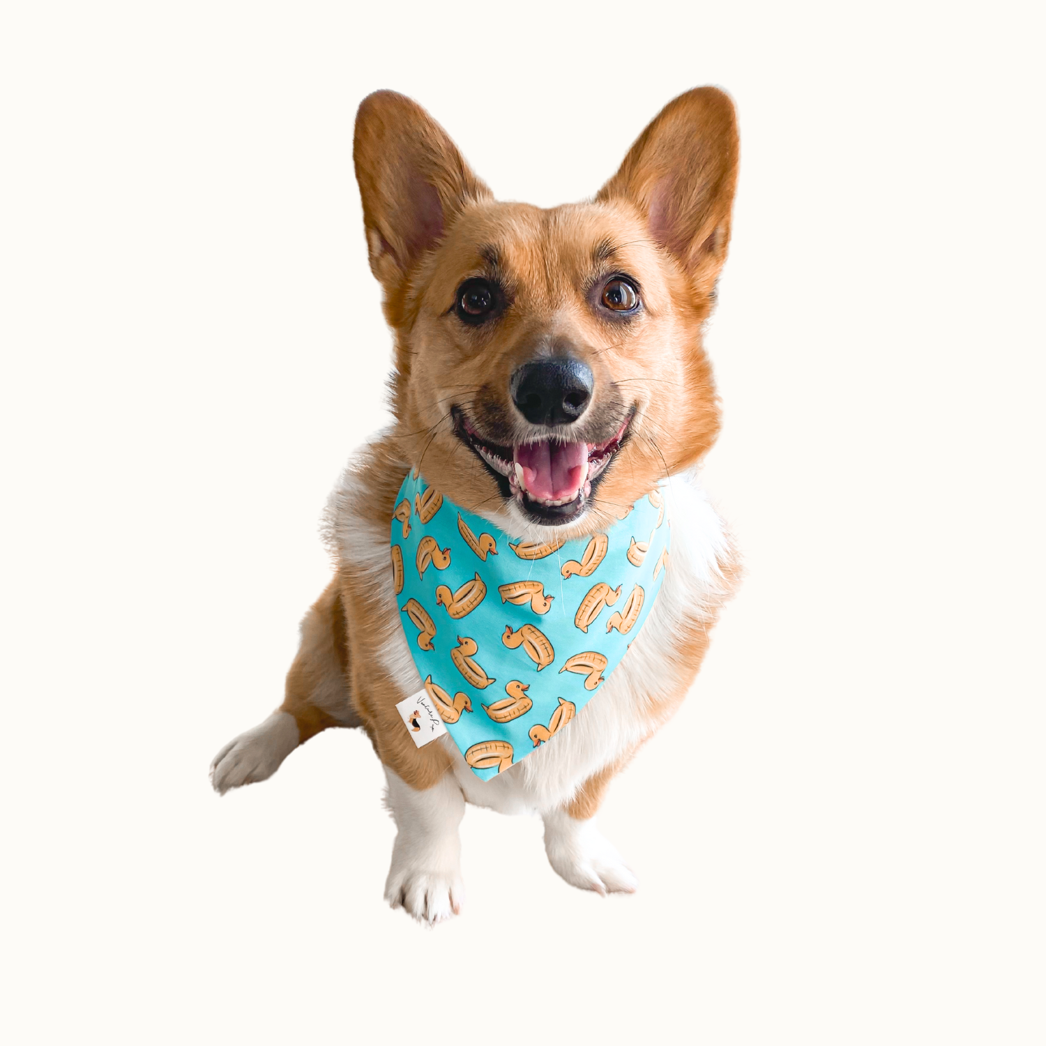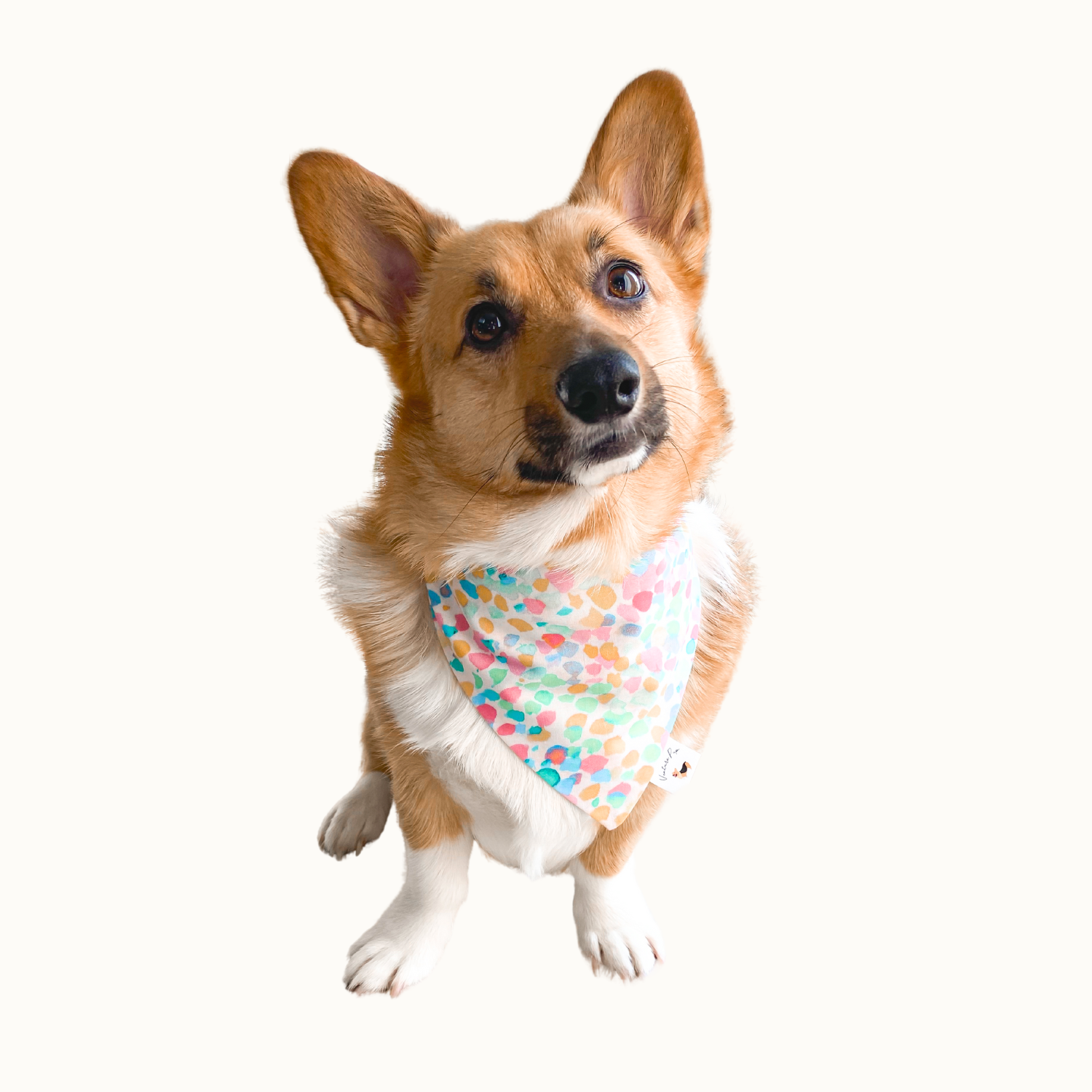 Model Info: Bailey is a 35lb Corgi and is wearing a size medium snap-on bandana