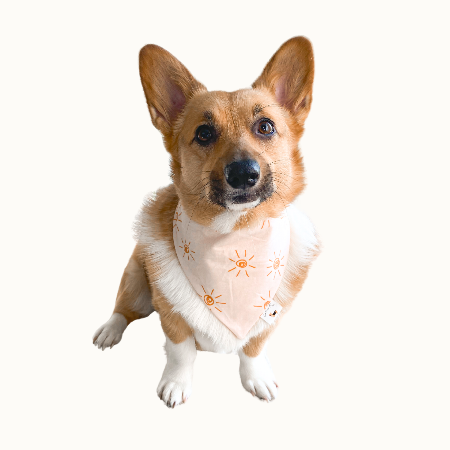 Model Info: Bailey is a 35lb Corgi and is wearing a size medium snap-on bandana