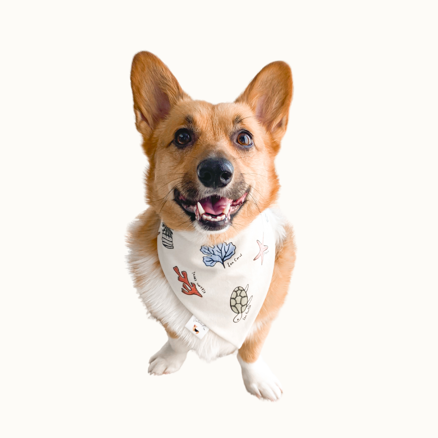 Model Info: Bailey is a 35lb Corgi and is wearing a size medium snap-on bandana