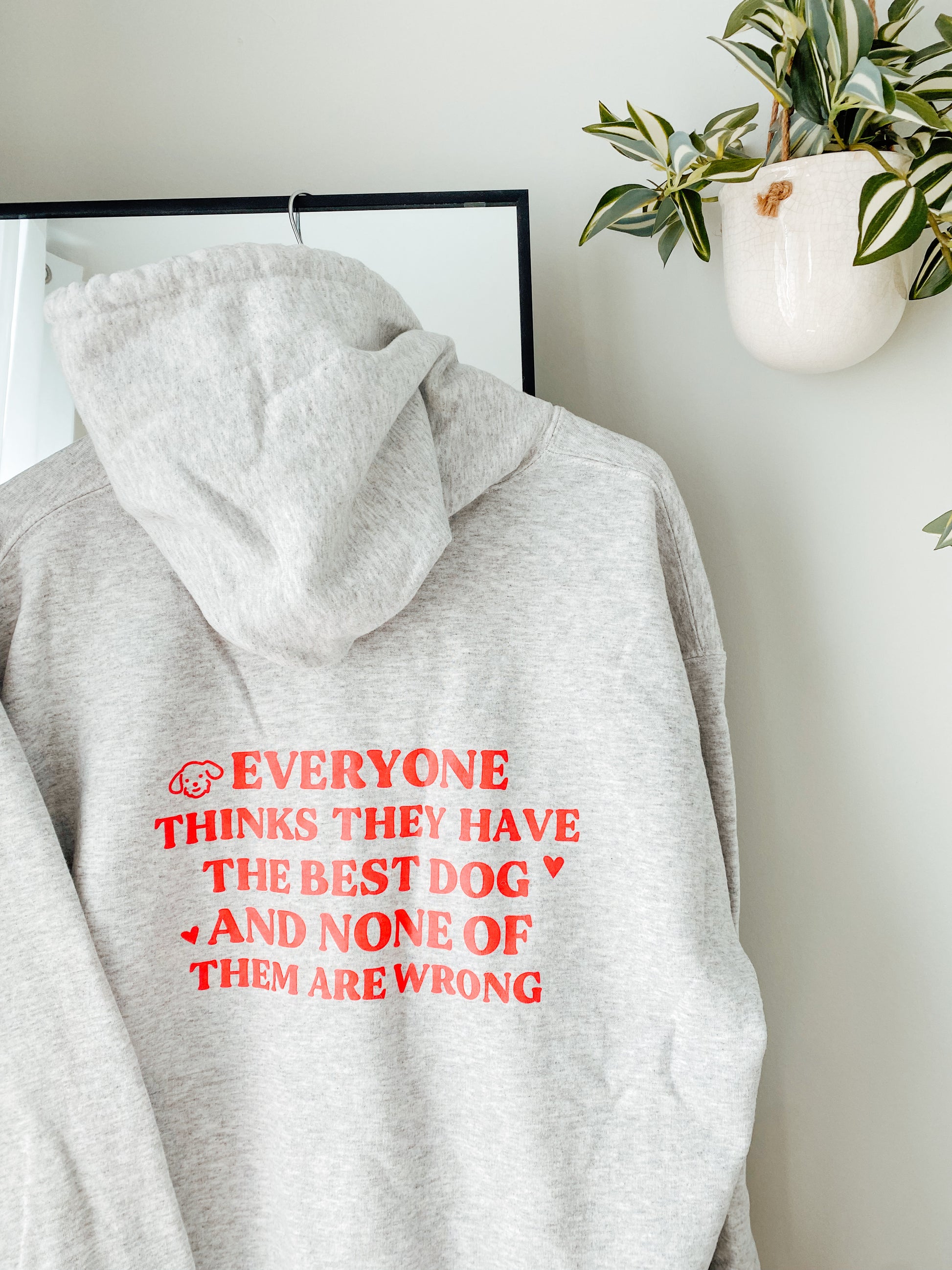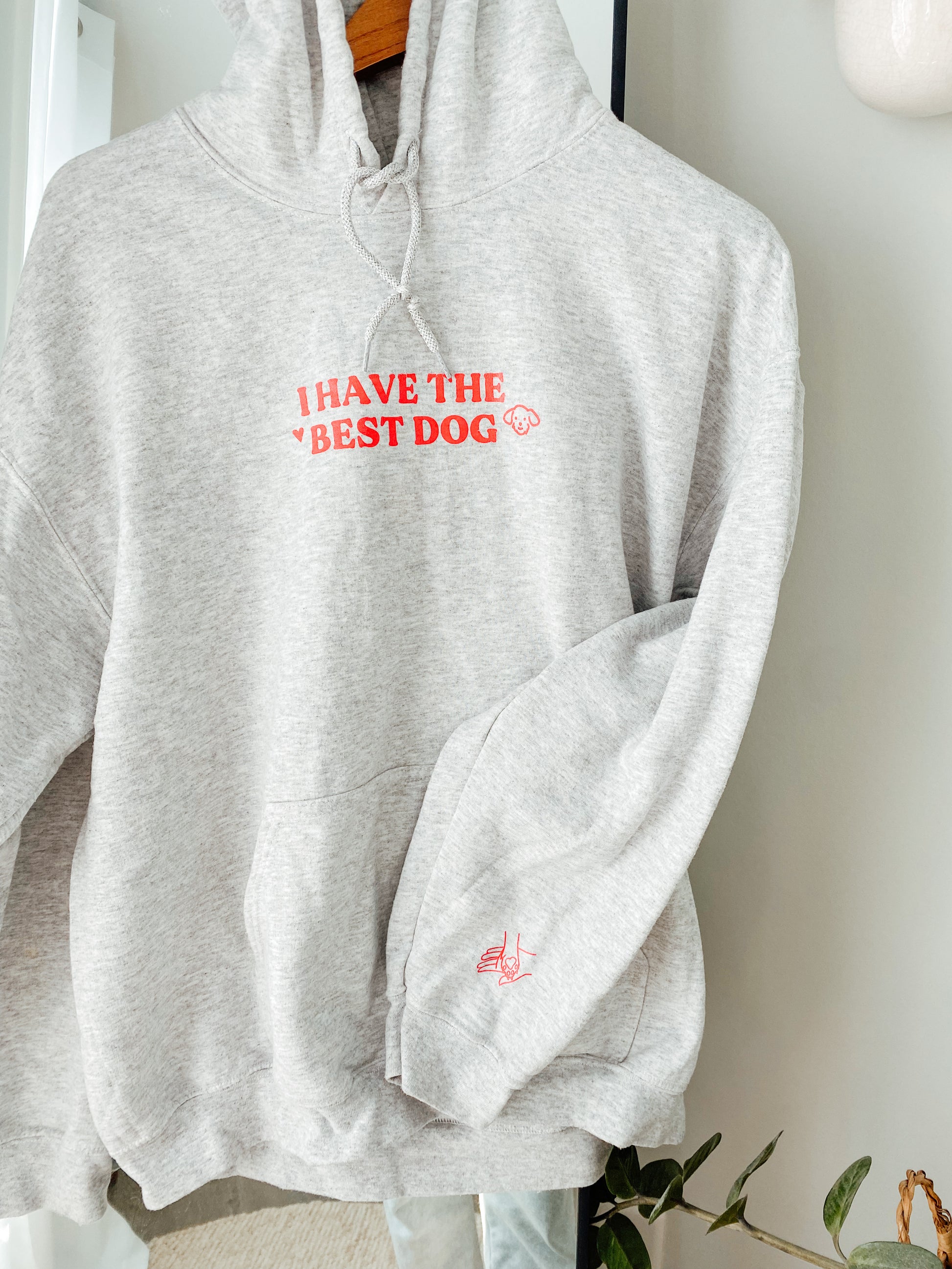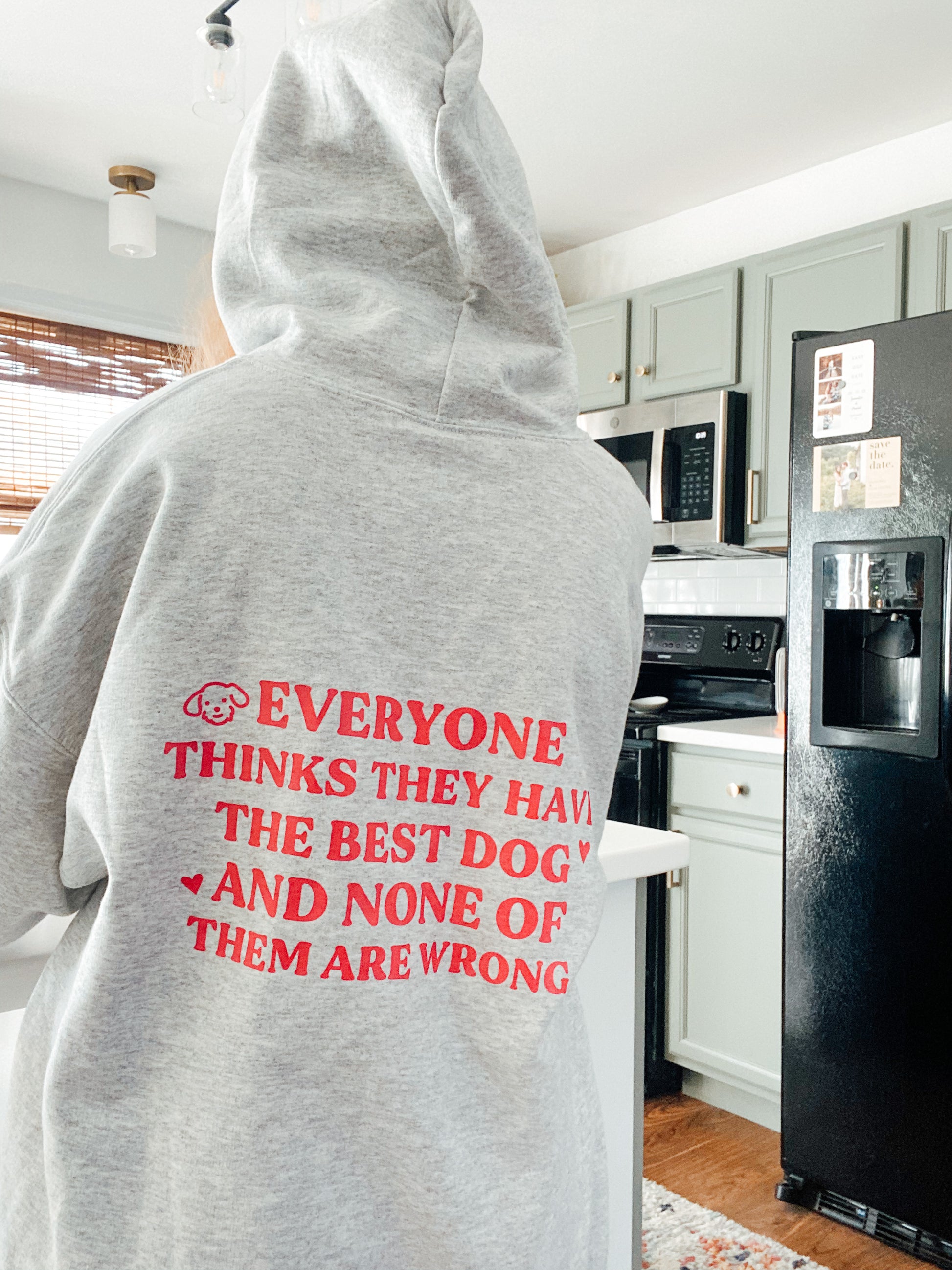 Inspired by our love for our dogs, thisย screen printed sweatshirt features a cute phrase on the front and back stating we all have the best dogs.ย See sizing and material details below.
