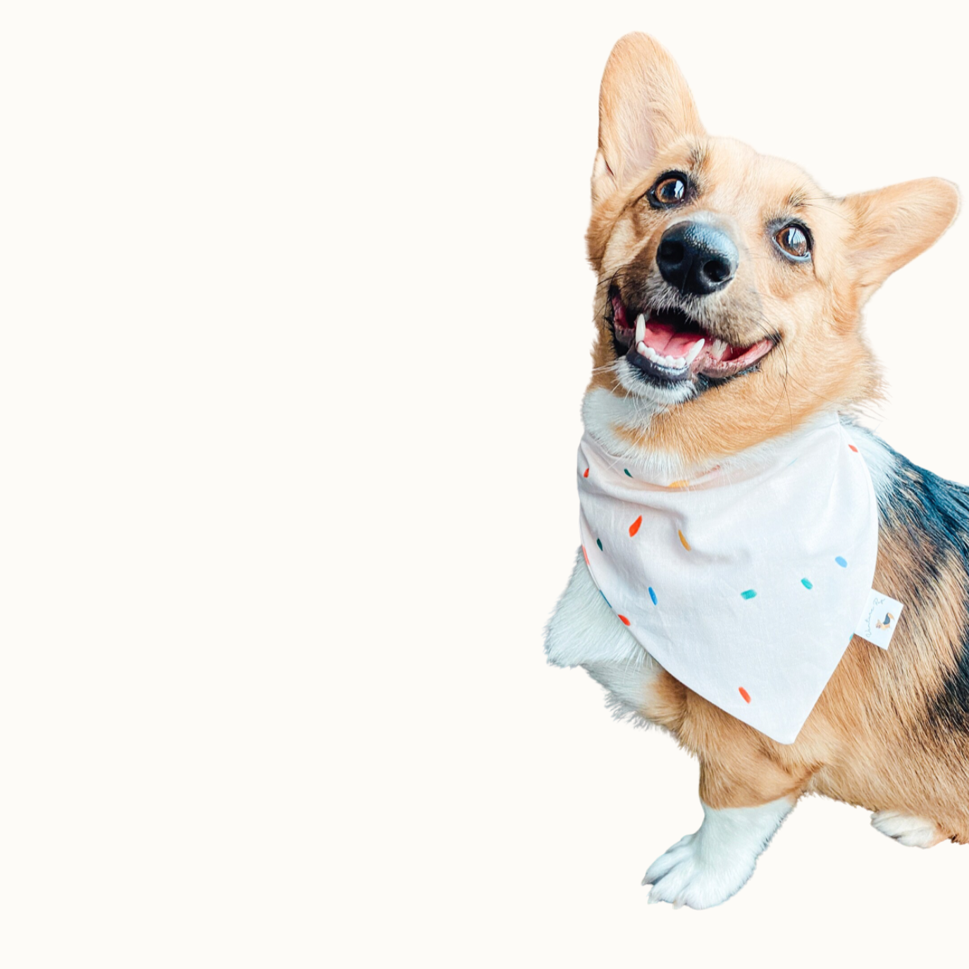 Model Info: Bailey is a 35lb Corgi and is wearing a size medium snap-on bandana