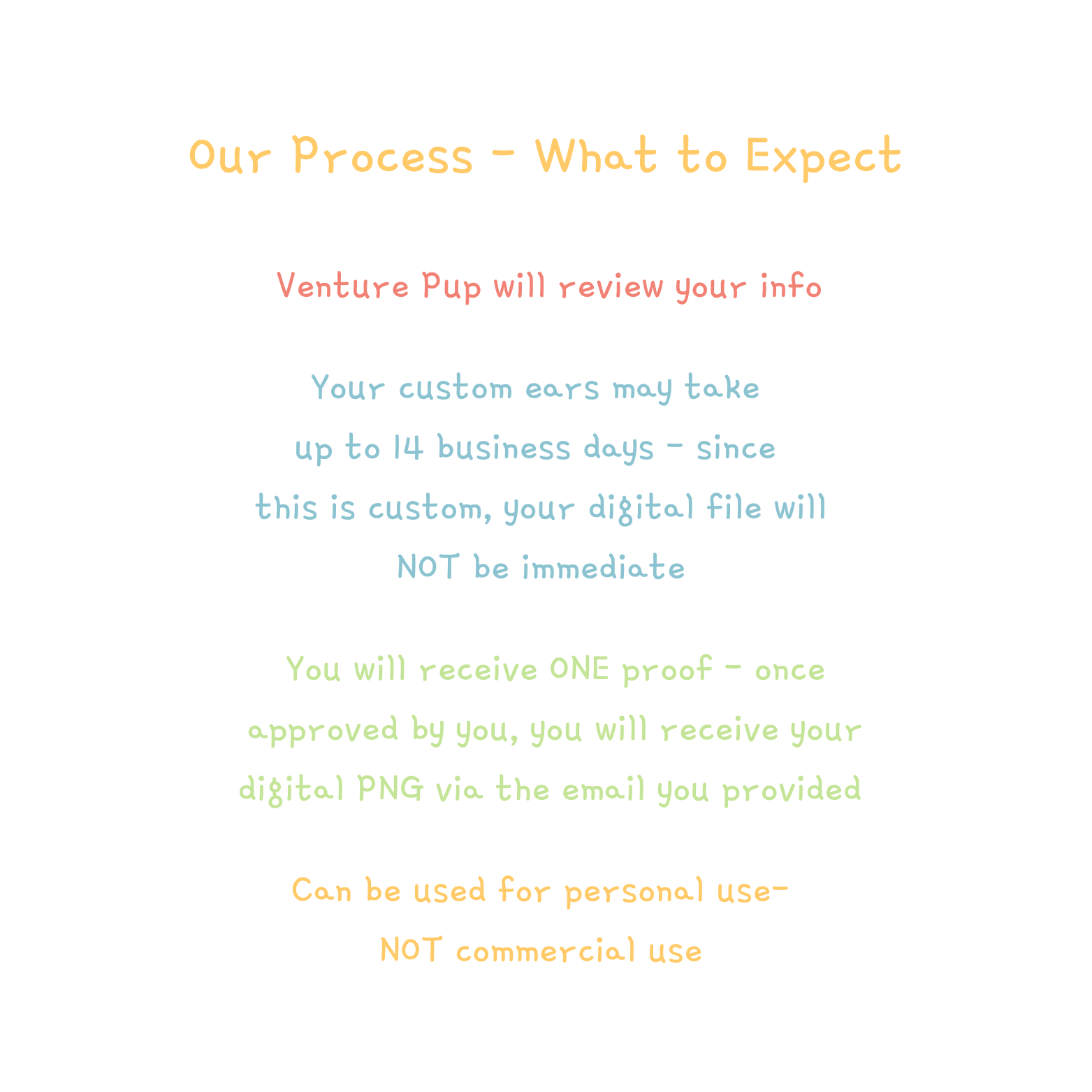 *You will receive a proof within 14 business days via email. You may receive one revision per design if needed, otherwise, let us know you approve and we will complete your order! You must approve within 24 hours or your order may be sent as is!